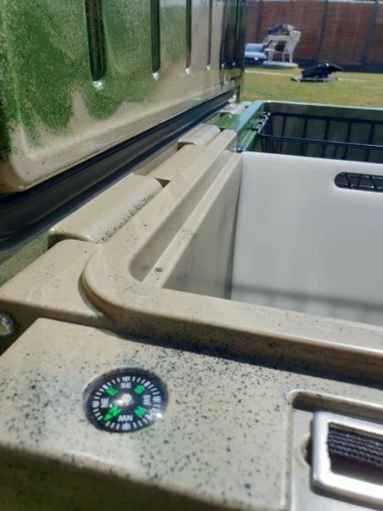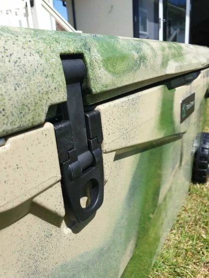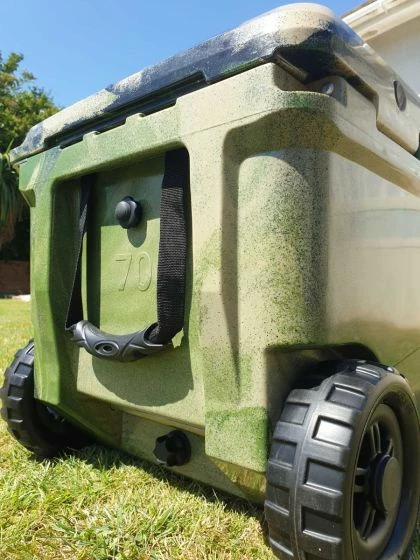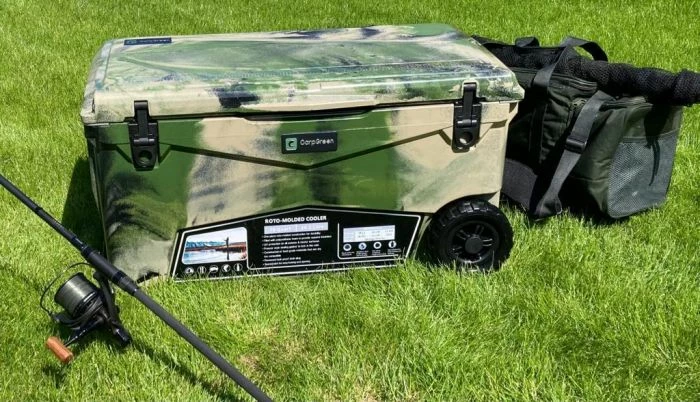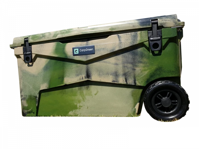 Carp Green’s Extreme Stay CG70 is a 66 litre (70 Quart) capacity wheeled cool box with basket, chopping board and cup holder included. The Extreme Stay is moved around using the sturdy side handles and wheels for when towing.