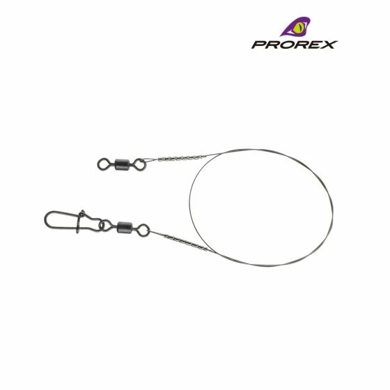 Titanium leader material is highly resistant to kinking. Thus it is distinctly more durable than usual 1×7 or 7×7 steel wires. Additionally titanium leaders are prone to far less tangles during the cast and ‘active’ retrieving! Equipped with extremely strong Prorex swivels and snaps. Ideal for twitching and jerkbaiting with plugs!