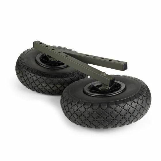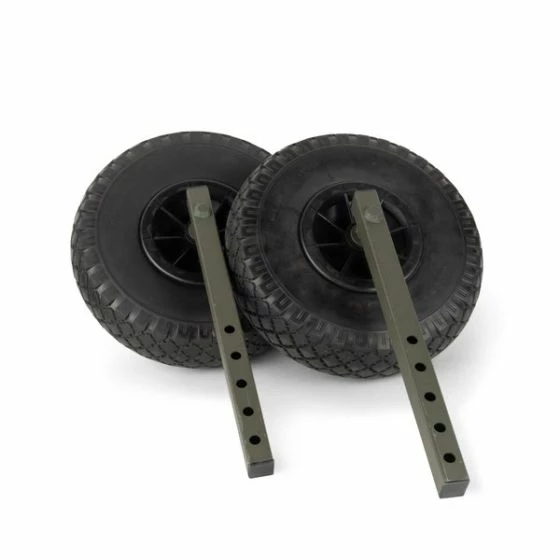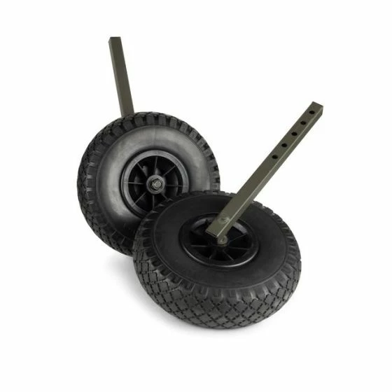 Replaces the supplied adjustable rear leg assemblies with wheels – perfect for flat ground conditions. Compatible with all Trax Power Barrows and T3265 Nash Tackle Power Barrow.