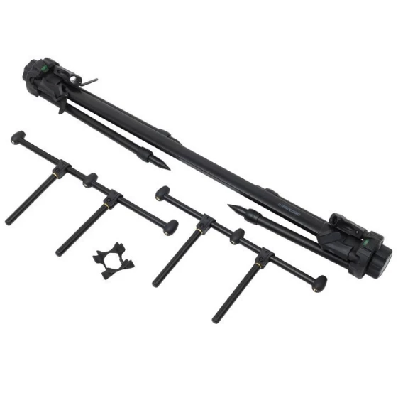 It is fully adjustable in both height and length and features a built-in spirit level so you can ensure your rods are always level.