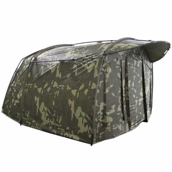 The bivvy also features a zip on/off front panel complete with mozzi side windows and fully customizable front door system. Front and rear mozzi vents with internal pockets and green/clear front door window options. Weighing in at only 9.2kg the AXS Bivvy also comes supplied with two 48” quick connect storm poles, heavy duty clip-in groundsheet, four vent spacer bars, an oversized compression style bag and heavy-duty T-pegs.