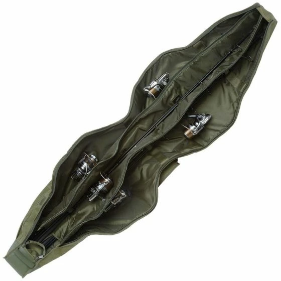 - Designed to offer maximum protection while remaining compact enough to save valuable space, the NXG 5-Rod Compact Rod Sleeve 12ft is perfect for anglers who prefer to fish with multiple rods and even keep your spod/marker rod and floater rod safe and protected while not in use, but without taking up too much space. Featuring two duplon carry handles and a padded shoulder strap, it makes moving your rods to your swim easy and is fitted with a variety of pockets to house banksticks, weigh slings and a pocket on the spine to store your landing net too. Inside, there is ample amounts of space to take large bit pit reels and rods which have 50mm butt rings and a padded divider to keep your rods separated and protect them while in transit, with the whole rod sleeve look superb, finished in a subtle shade of olive green.